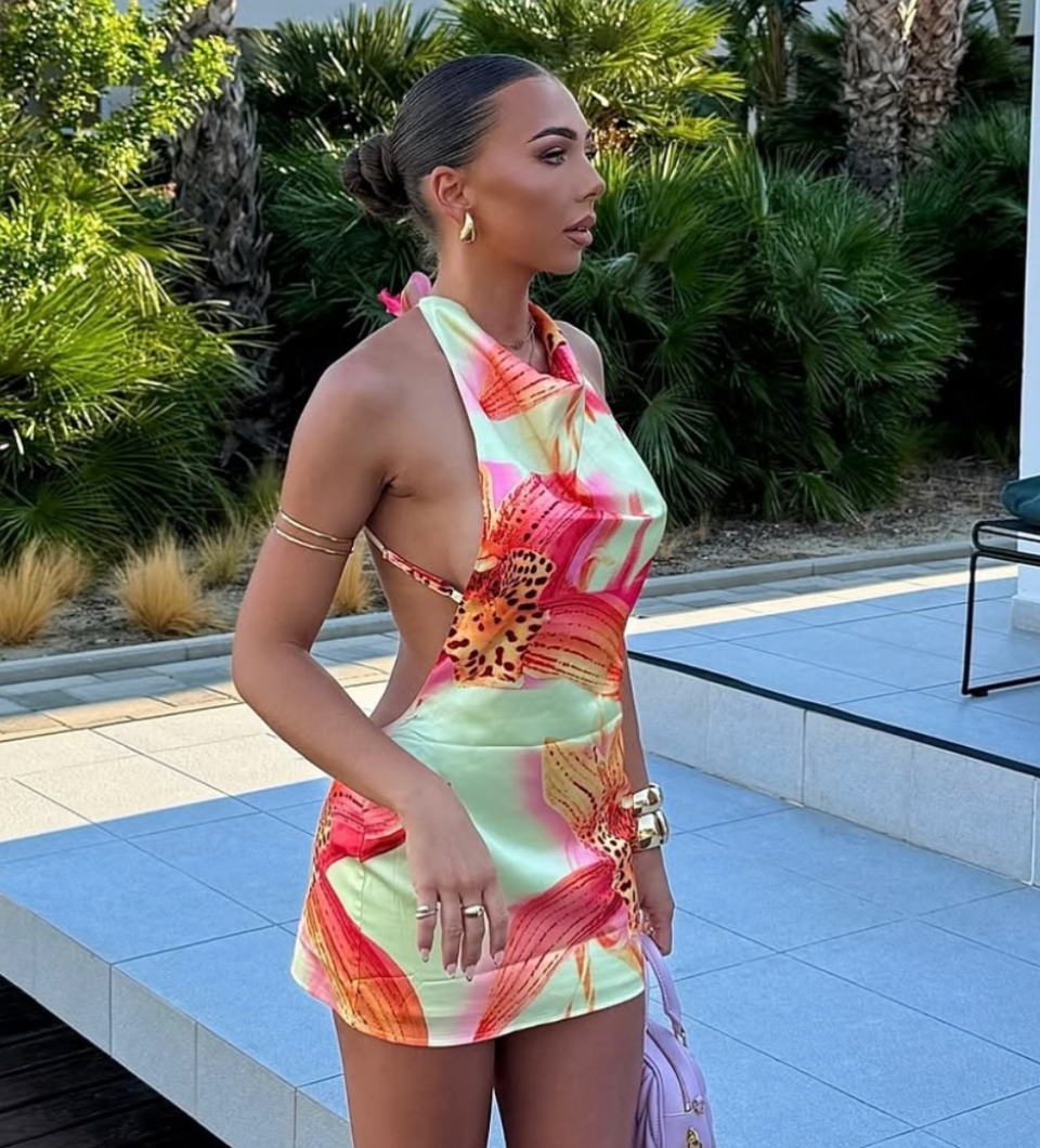 Lucia Backless Mini Dress With Flower Detail